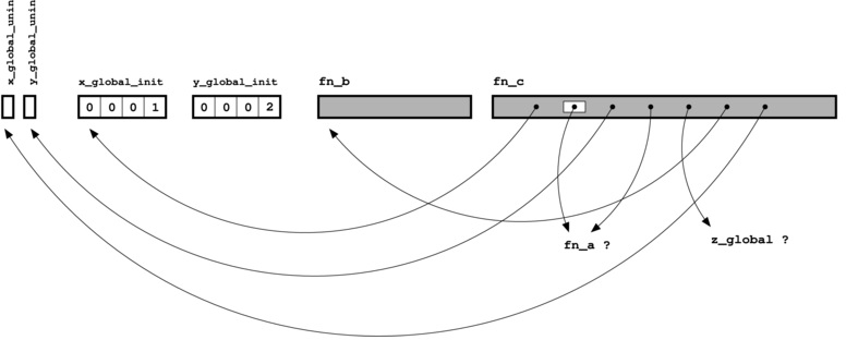 The compiler only allows the code to refer to a variable or a function if the compiler has seen its declaration. Thus, we can depict the previous program’s object file using the below diagram.