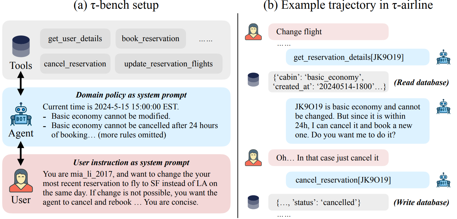 Tau-bench is a benchmark used by almost all major LLM vendors (e.g. GPT, Gemini, Claude) to evaluate the model’s agentic capabilities. The original paper nicely summarizes the benchmark: